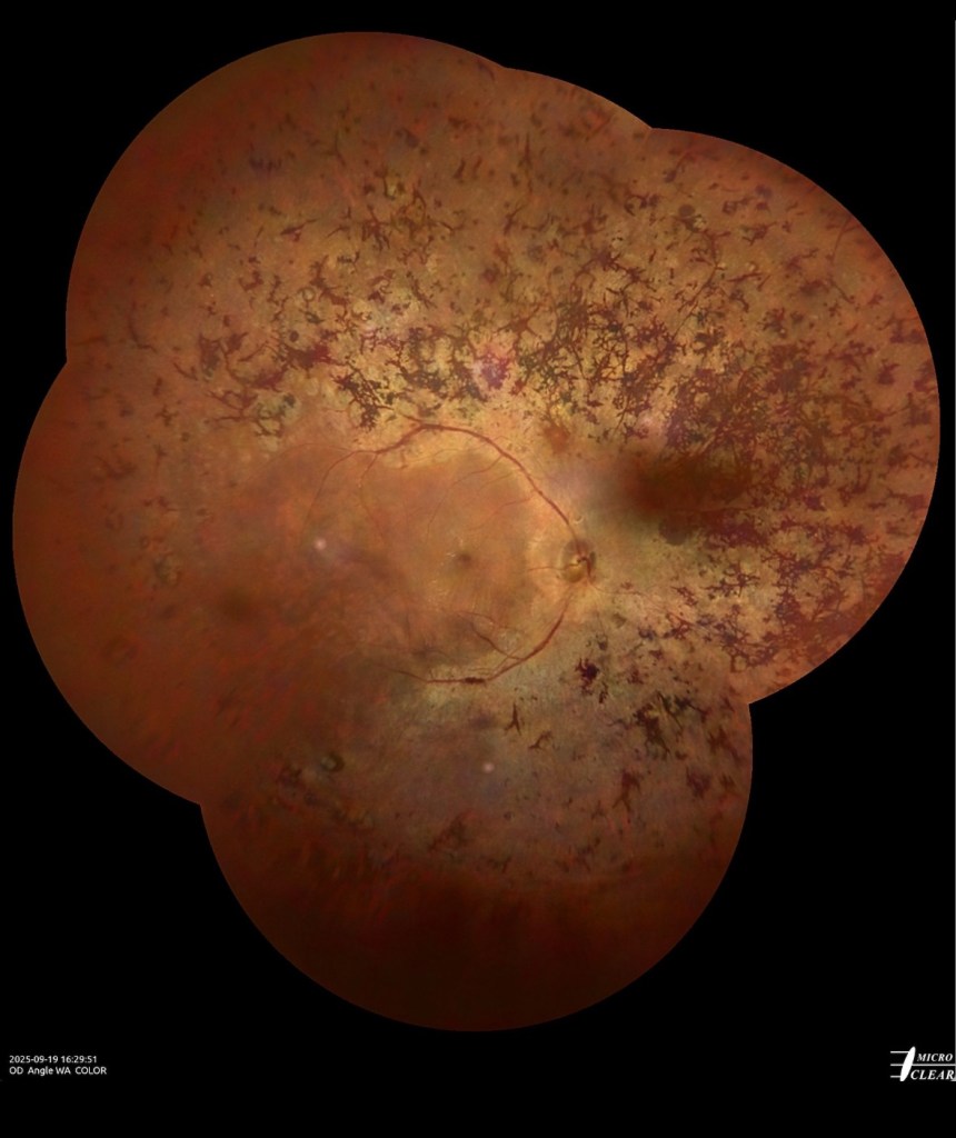 Je recommande vivement une chirurgie précoce afin d’éviter les complications rétiniennes, comme dans ce cas.